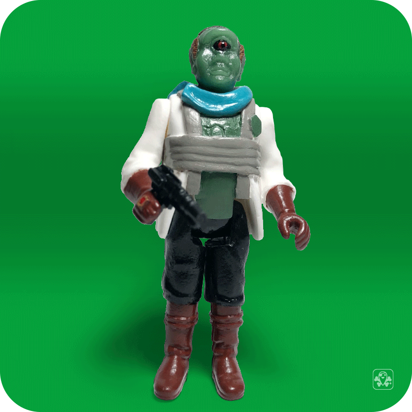 This is a Kenner style custom Gor Koresh a.k.a. Cyclops 5 POA action figure from The Mandalorian Disney Plus series.